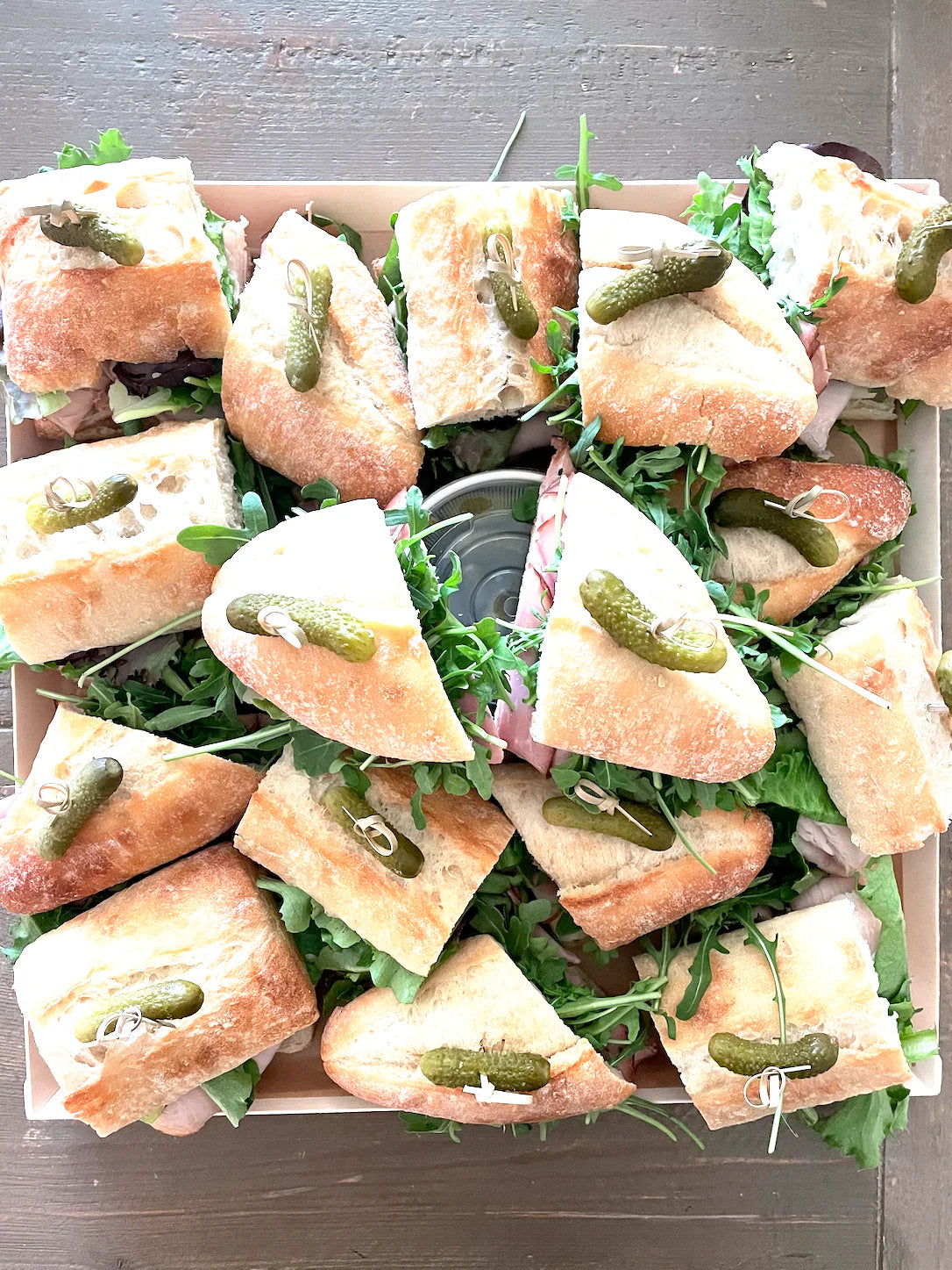 A beautifully arrangement of handcrafted sandwiches designed to satisfy every taste. Perfect for meetings, gatherings, beach days, or any event that needs something undeniably delicious. Each board includes mustard, mayo, pickles, and chips on the side for the perfect finishing touch.